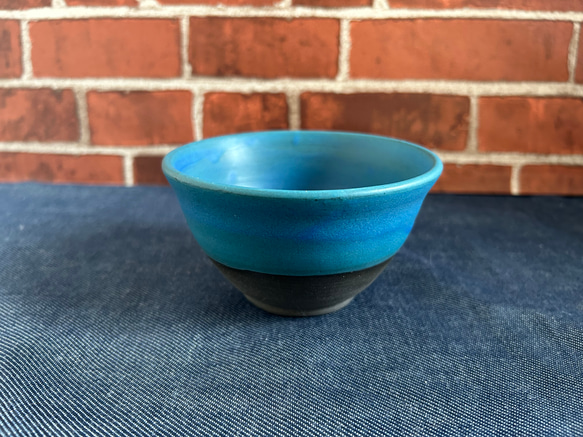ターコイズブルー深い碧晴れ渡る日に輝くマリンブルーのような海の色、Umimitaの代表作でもあり、人気の色の青い飯碗(茶碗)です。黒粘土を使ってます。夏はかき氷もいいですね♪高さ:約6.5cm口径:約11.0cm ※多少の誤差が生じます。ひとつひとつ手作りで製作していますので、形状や色の濃淡、釉薬の流れが異なりますが、...