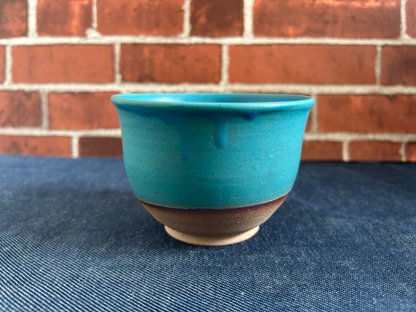 ターコイズブルー深い碧晴れ渡る日に輝くマリンブルーのような海の色、Umimitaの代表作でもあり、人気の色の青い飯碗(茶碗)です。夏はかき氷もいいですね♪高さ:約7.0cm口径:約10.0cm ※多少の誤差が生じます。ひとつひとつ手作りで製作していますので、形状や色の濃淡、釉薬の流れが異なりますが、個性として感じていた...