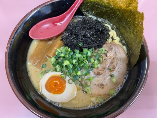 豚骨ベースのラーメンに岩のりがトッピングしてあるいわゆる海系です
