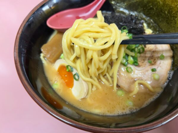 太麺にスープが合います