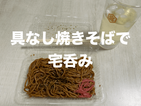 スポンサーリンク スポンサーリンク Food & Drink 具なし焼きそばとハイボール 2025.10.28 スポンサーリンク ドラッグストアの『具なし焼きそば』 夜だと具なしが胃腸に丁度よい 夜に20%引き なんとも言えない風情