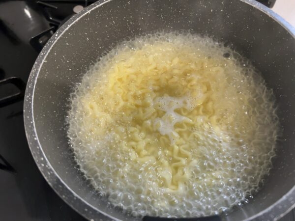 麺が茹で上がったら、湯切りは緩めにして(好み)