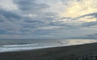 茅ヶ崎の海写真、雪残る釣り日和 (2022/01/07)